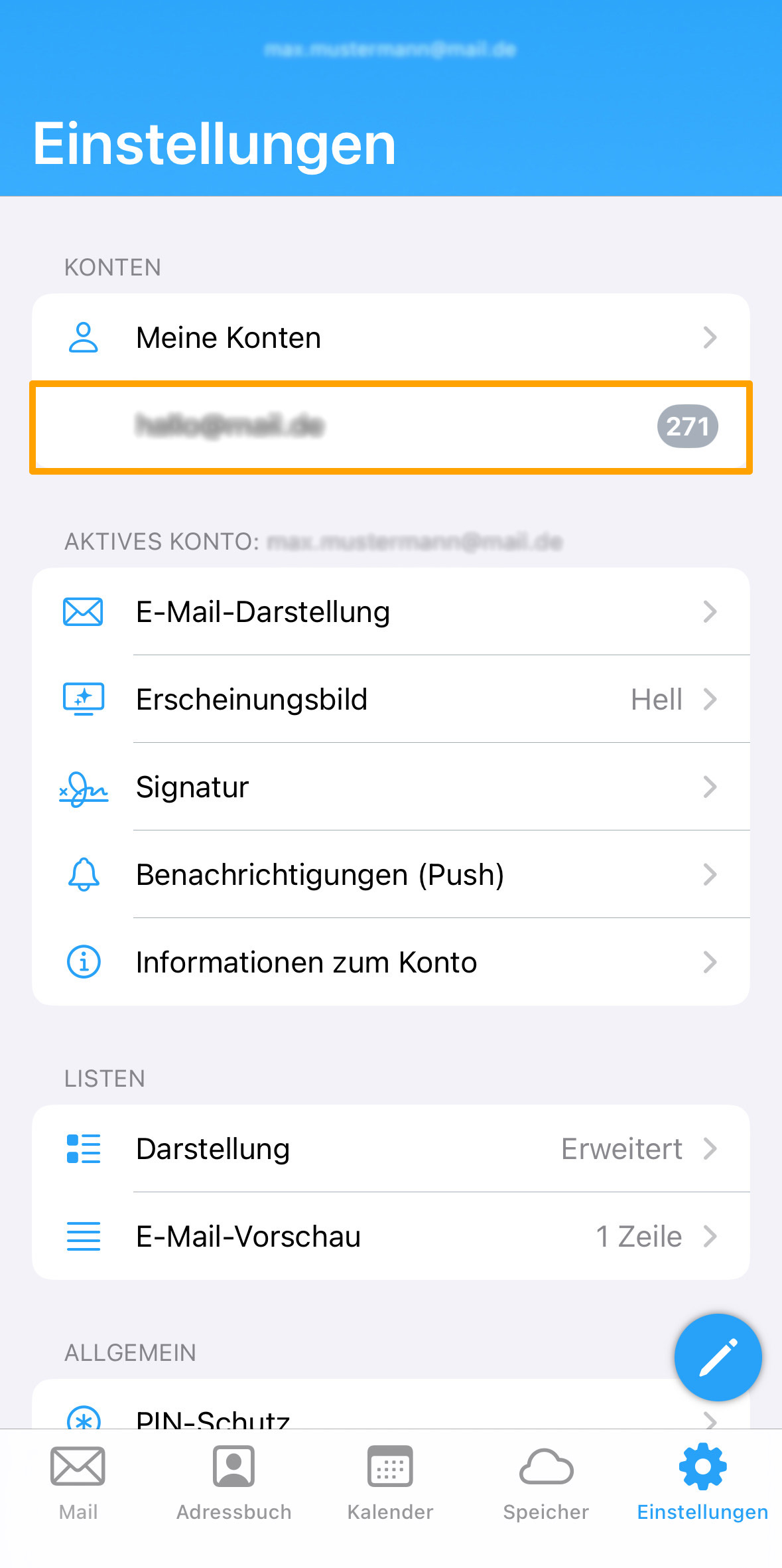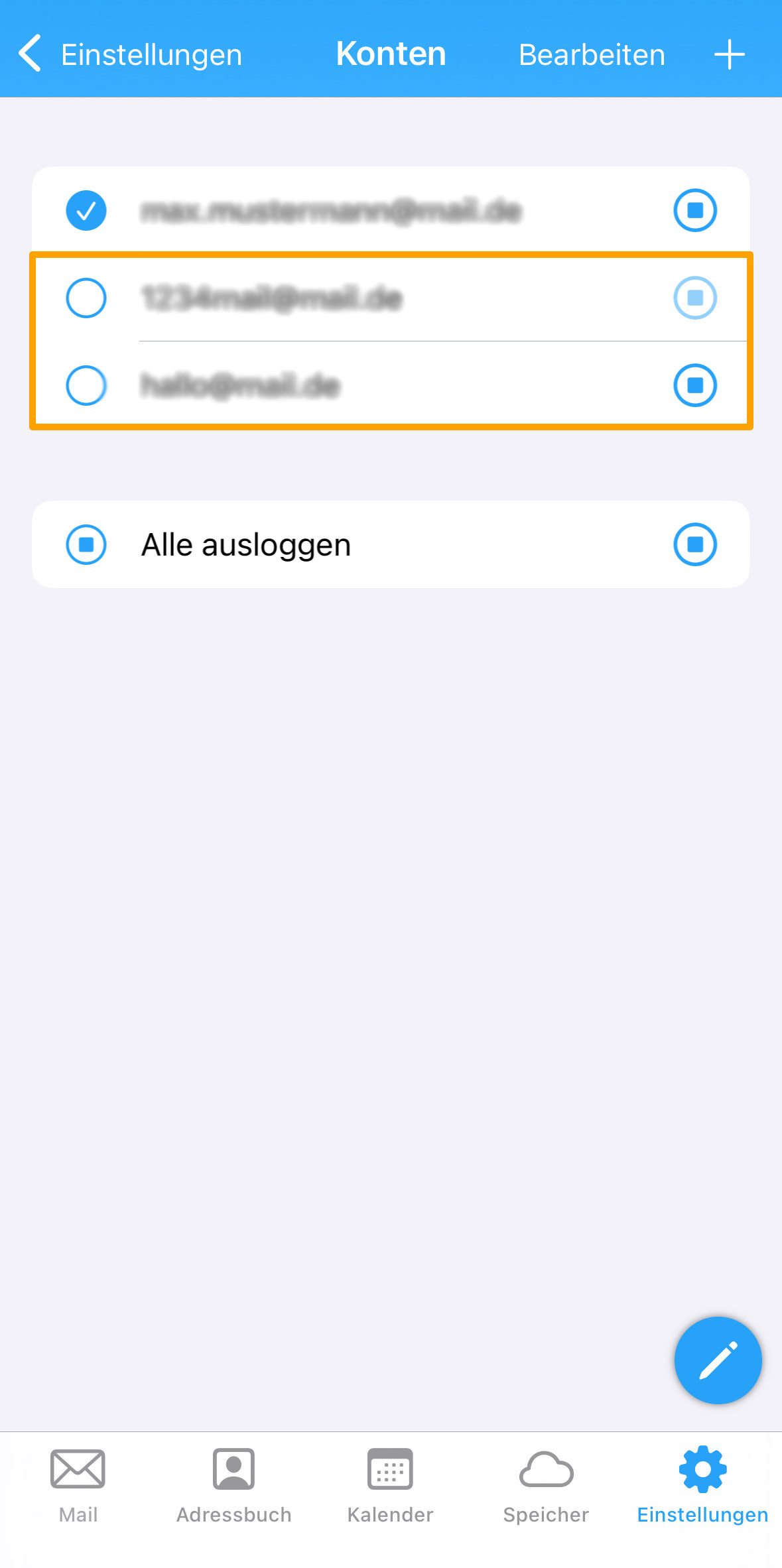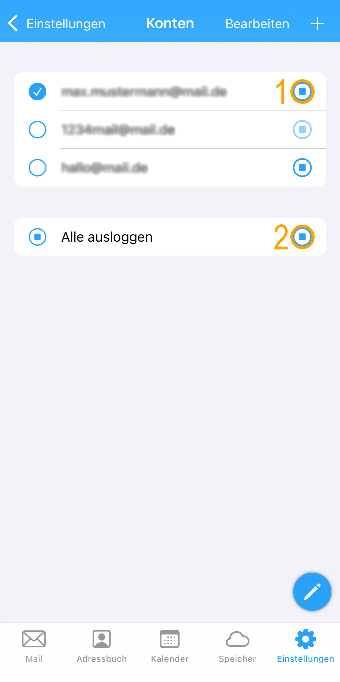 Wichtiger Hinweis: Das Ausloggen aus Ihren E-Mail-Konten in der mail.de-App ist in der Regel nicht notwendig.