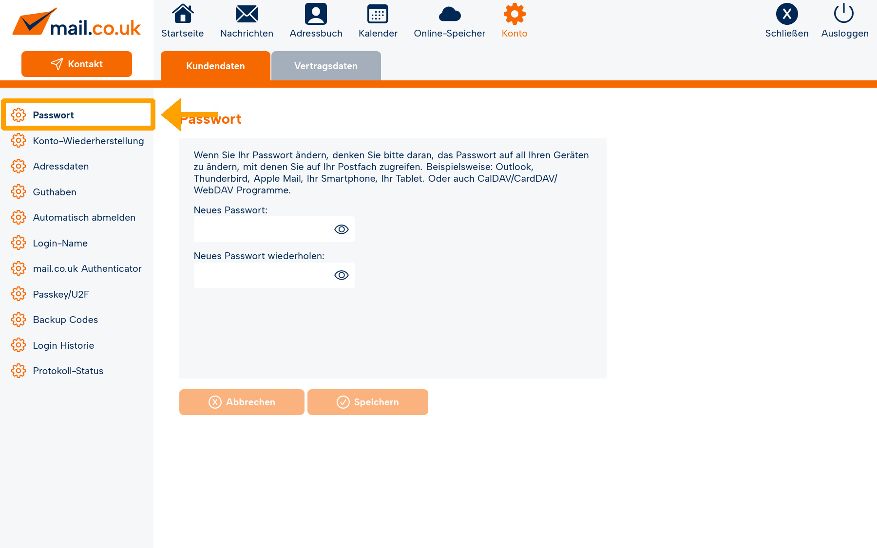 Die Navigationsleiste färbt sich orange, gehen Sie auf den Reiter "Konto".