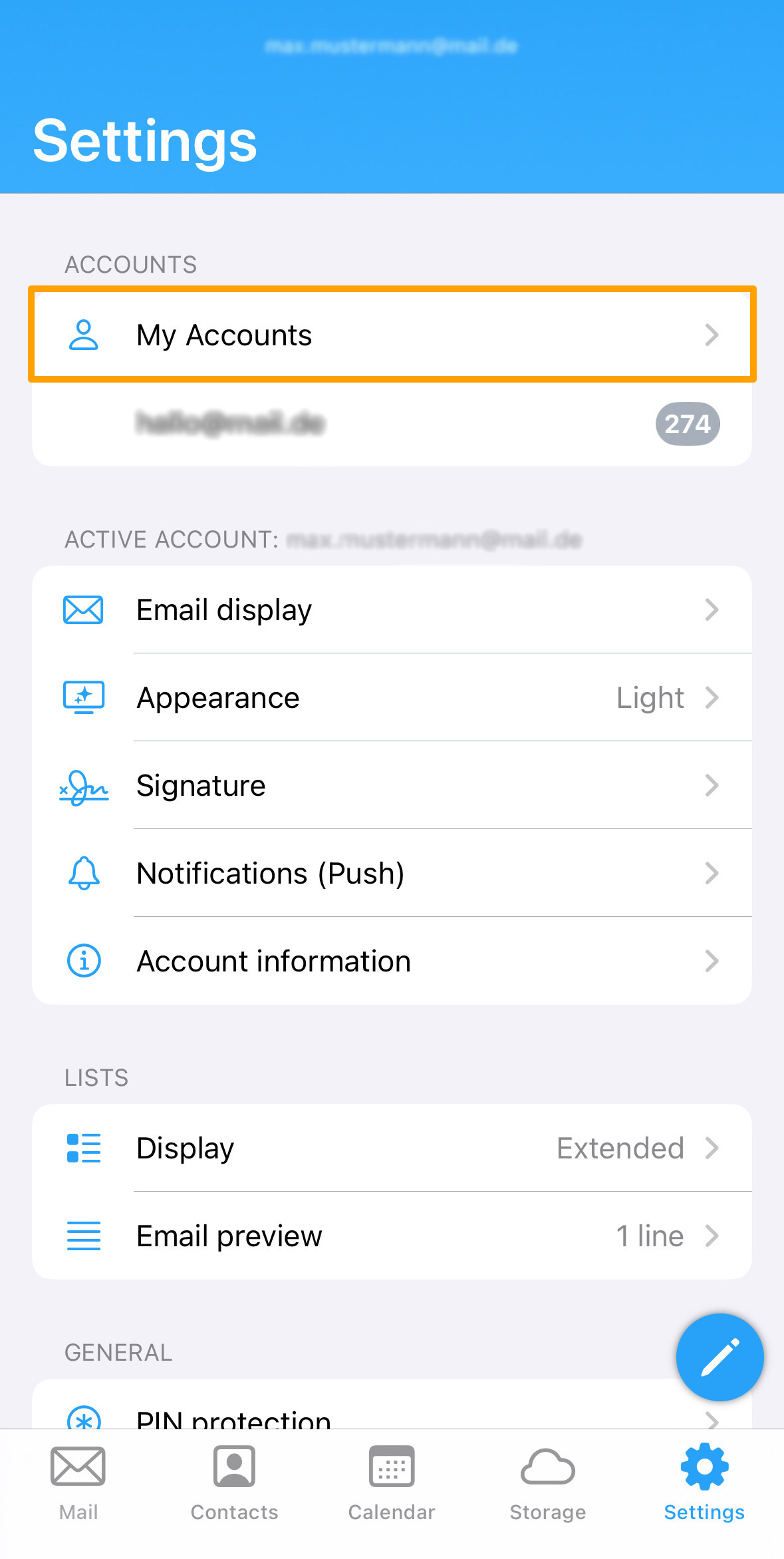 If you want to log out of the mail.co.uk app or switch your account, you can easily do so in the settings.